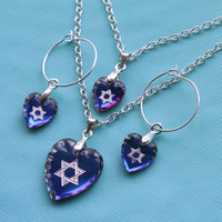 The exquisite heart-shaped Intaglio glass star of David amulets are hand-carved with stunning ever-changing silver detail embdedded in iridescent midnight blue glass that beautifully transforms when it catches light.