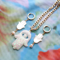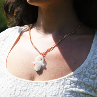 Iridescent White Sands Hamsa Statement Necklace