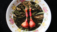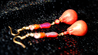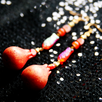 Featuring our stunning handmade clay pomegranate beads finished with our custom in-house gold varnish, these extraordinary earrings will turn heads with their combination of luxurious materials including vintage millefiori, iridescent fish, and stunning gold accents. All these adornments of luck will lead you into a sweet new year.