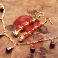 Simple, elegant, and eye-catching, the Ruby Pomegranate Gemstone Drop Earrings are the perfect addition to your high holiday style. Featuring gold-plated pomegranate pendants with ruby crystals adorning polished golden citrine and vintage beads.