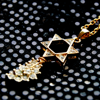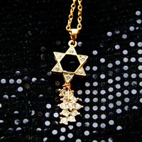Wishing upon a shooting star never looked so glamorous as when it's trailing its dazzling tail across your neck! This special one of a kind necklace features a gold-plated and cubic zirconia magen david pendant adorned with salvaged broken vintage jewellery to give the appearance of an elegant shooting star of david.