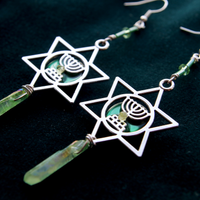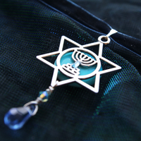 Reversible magen david pendants can be worn facing both directions with either a crystal-adorned menorah or accented shell, crystal, or gemstone facing outwards.